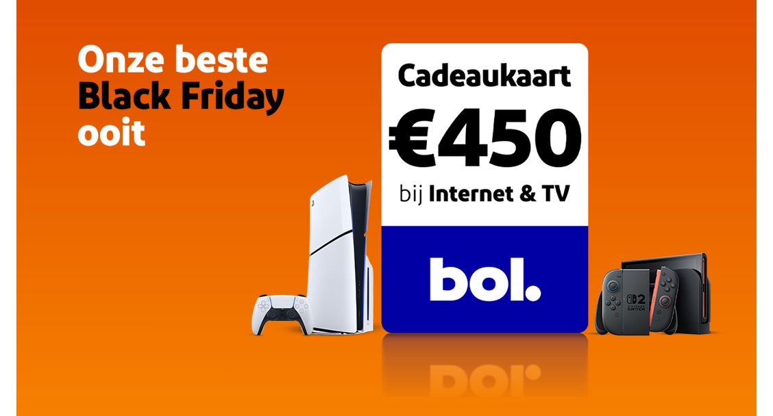 Kies voor Internet & TV en krijg gratis een bol cadeaukaart van € 450 én 1 streamingdienst cadeau. Bij een 2-jarig abonnement.