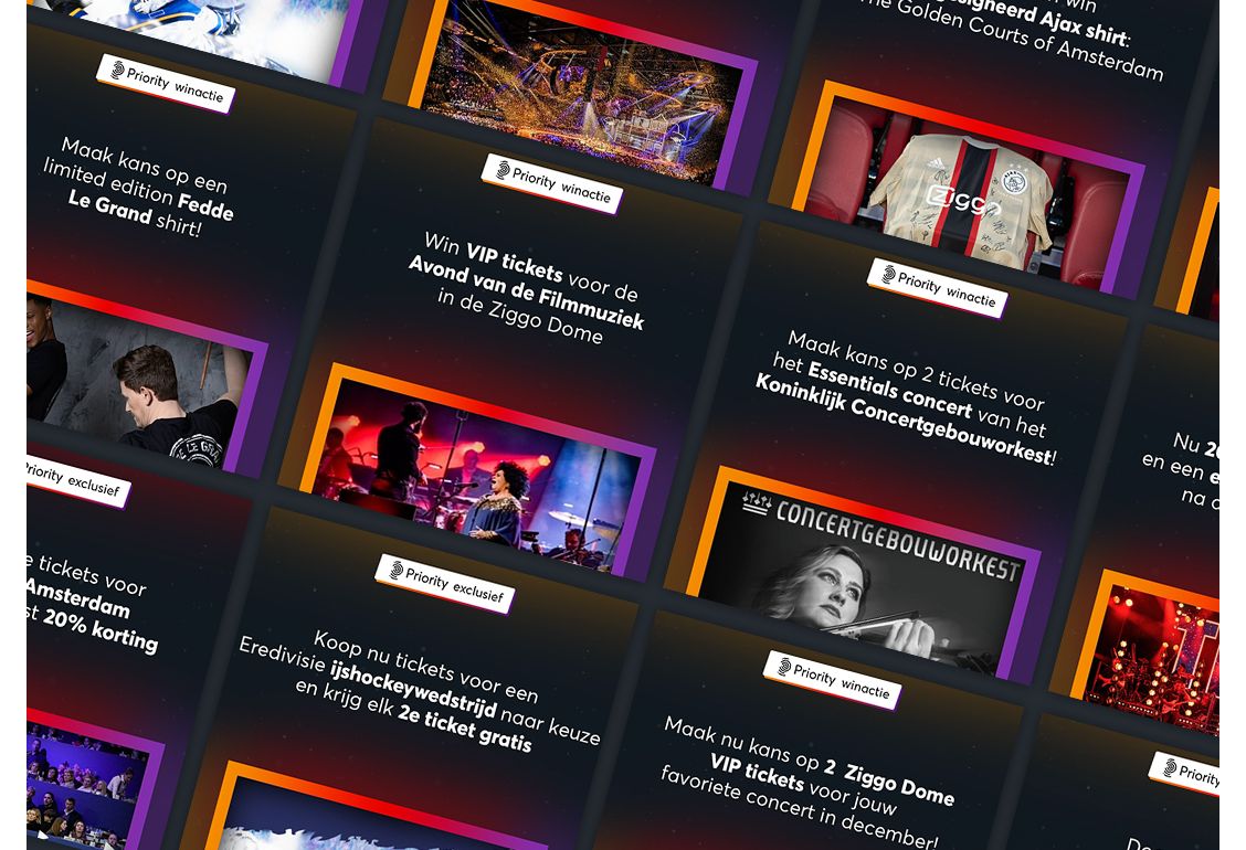 We voegen wekelijks nieuwe acties toe aan Priority. Via ons Instagram account @PriorityVodafoneZiggo blijf je op de hoogte van de tofste acties.