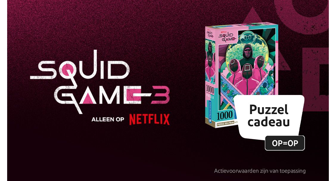 Speel mee met het laatste seizoen van Squid Game. Bestel Netflix bij Ziggo en haal je gratis puzzel in de winkel. En dat is niet alles. Met Priority van Ziggo maak je nu kans op 456 dagen Netflix én Ziggo! Heb je Netflix via Ziggo? Dan maak je zelfs 5x meer kans.
