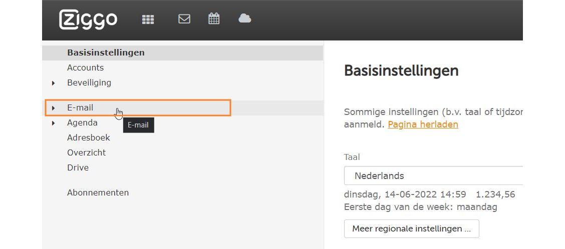 Log in op Ziggo Mail met je e-mailadres en wachtwoord.