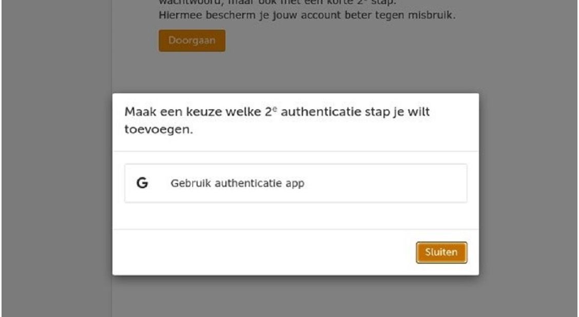 Download een authenticatie app, zoals Google Authenticator of Microsoft Authenticator, voordat je verdergaat. Je vindt ze in de App store of Google Play.