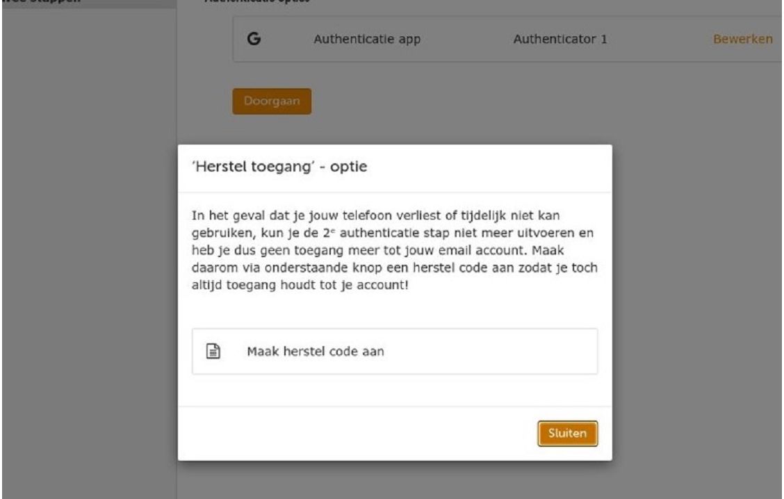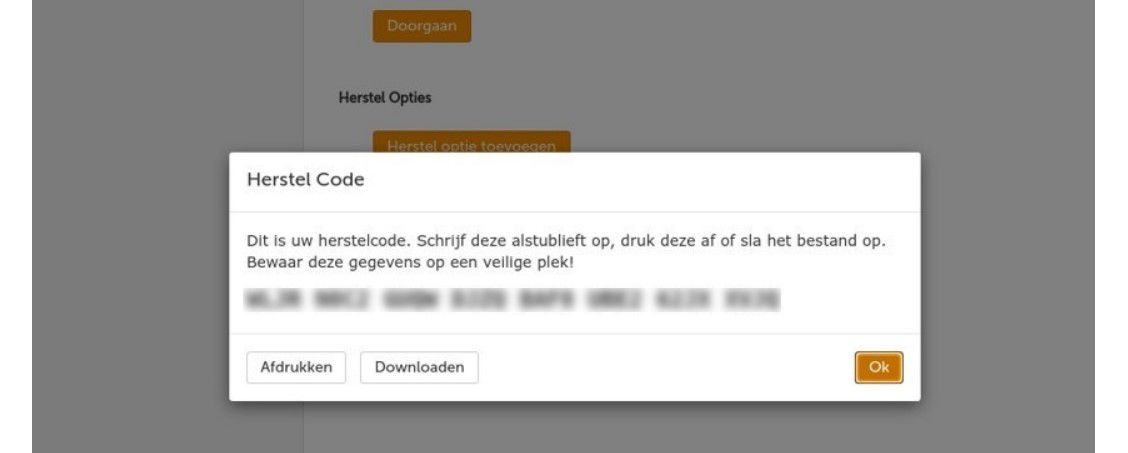Je hebt deze code nodig als je je telefoon bent kwijtgeraakt en je niet meer via de authenticatie app kan inloggen.