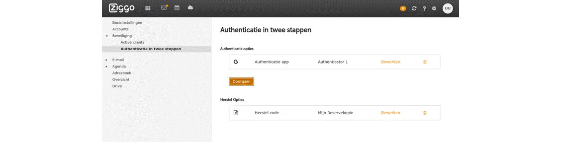 Je hebt authenticatie in 2 stappen voor Ziggo Mail ingesteld.