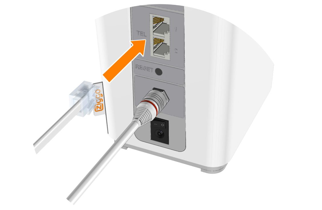 Stop de telefoonkabel in Tel 1 op het modem en stop de andere kant in je telefoontoestel. Nu is je telefoontoestel rechtstreeks op het modem aangesloten.