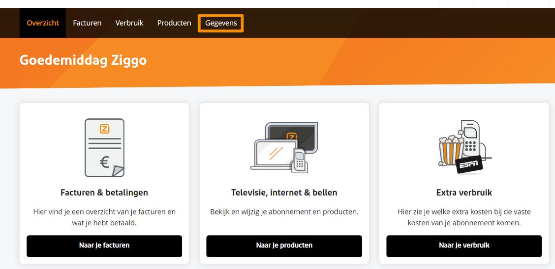 Klik in Mijn Ziggo op de categorie Gegevens.