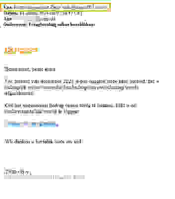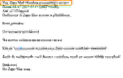 23 Mei - In de e-mail wordt gesuggereerd dat uw account is afgesloten voor het verzenden en ontvangen van e-mails en opnieuw moet bevestigen of uw account nog steeds actief is. Dit is phishing en niet afkomstig van Ziggo.