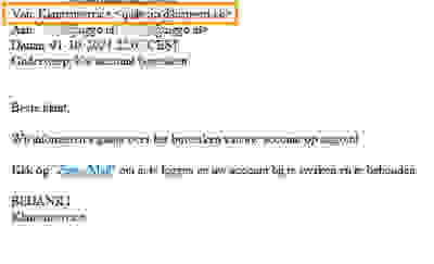 04 September - In de e-mail wordt gesuggereerd dat er geverifiërd moet worden of het email account van u is. Dit is phishing en niet afkomstig van Ziggo.