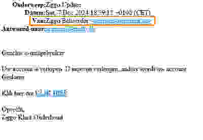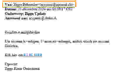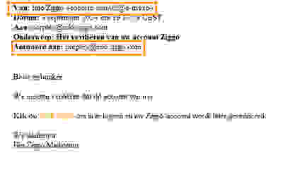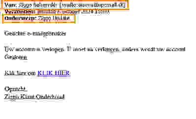 08 September - In de e-mail wordt gesuggereerd dat geverifieërd moet worden dat dit Ziggo-account van u is. Dit is phishing en niet afkomstig van Ziggo.