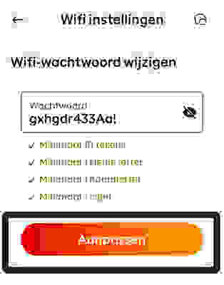 Wifi-wachtwoord: vul hier je nieuwe, zelfgekozen wachtwoord in en druk op Aanpassen.