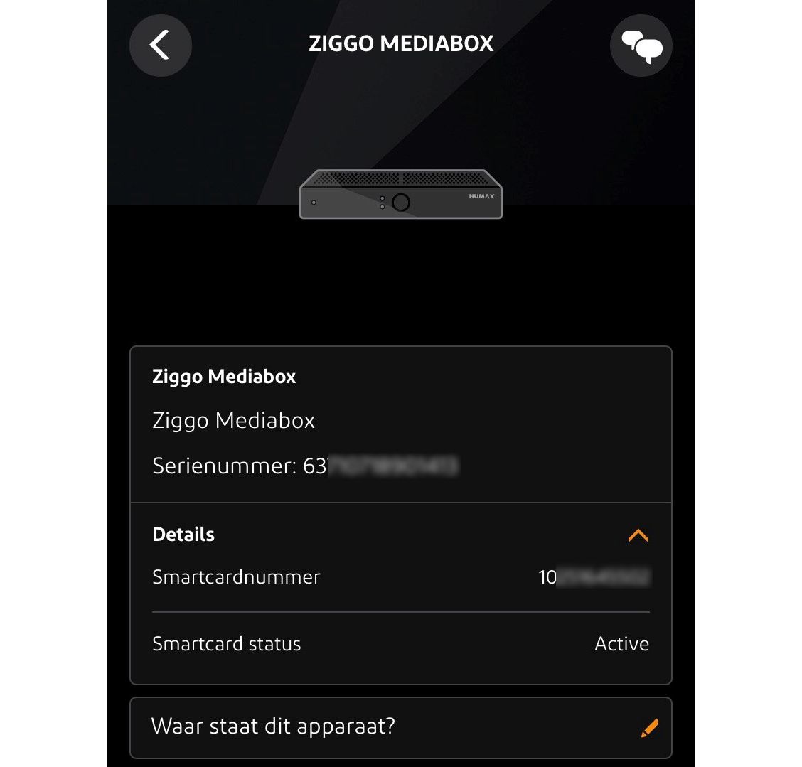 Staat het smartcardnummer vermeld in de Vodafone & Ziggo app?