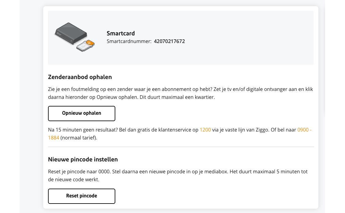 Staat het smartcardnummer vermeld in MijnZiggo?