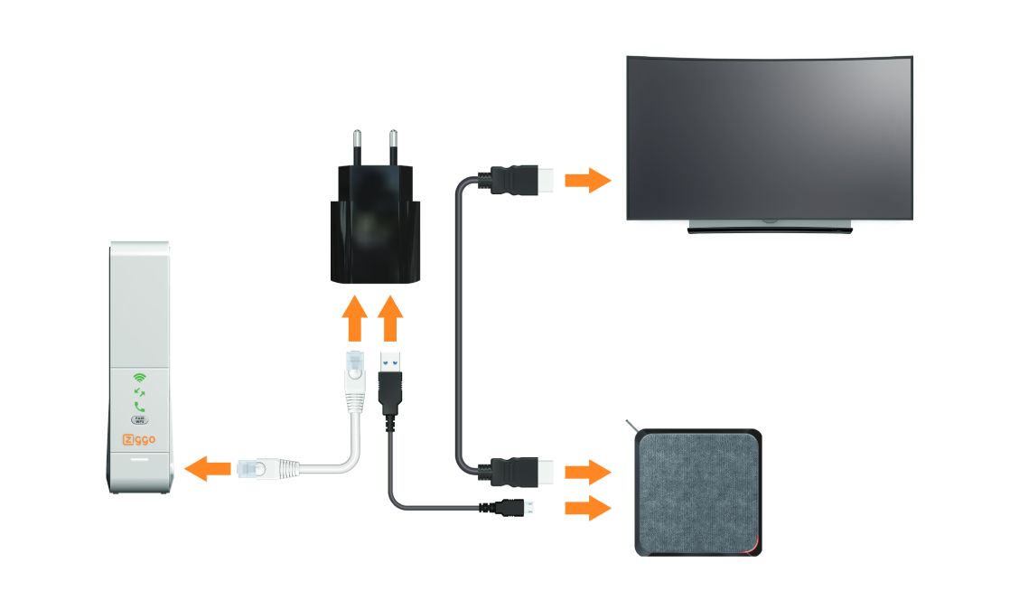 Sluit je mediabox aan met een internetkabel. Zo ontwijk je wifi-blokkades zoals betonnen muren en geniet je van de snelste en meest stabiele verbinding.